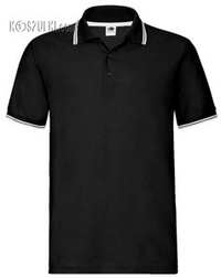Czarna koszulka z kołnierzykiem i lamówkami w kontrastowym kolorze.