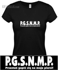 Czerwona koszulka damska z nadrukiem oczu i dłoni wychodzących z koszulki