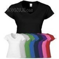 Koszulka damska z dekoltem w serek bez żadnego nadruku.