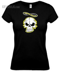 Czarna koszulka damska z nadrukiem czaszki z aureolą