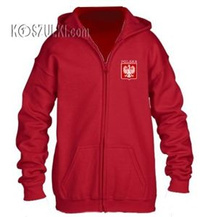 Czerwona bluza rozpinana z nadrukiem: godło na lewej piersi