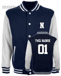 ( ilość produktów: 411 )Kurtka baseball- Granatowo-biała- z własnym nadrukiem